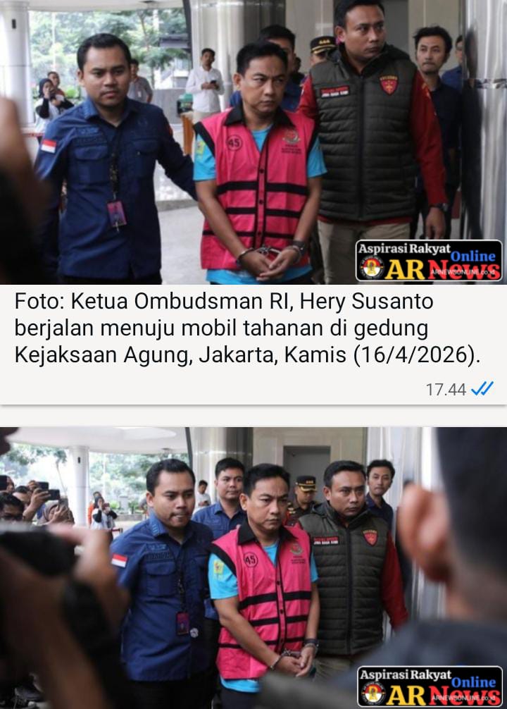 ARNews || Jakarta – Kejaksaan Agung telah menetapkan Ketua Ombudsman RI Hery Susanto (HS) sebagai tersangka. Hery sudah keluar dari Gedung Pidsus Kejagung menggunakan rompi tahanan pink.