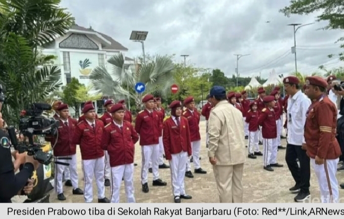 ARNews || Jakarta – Presiden Prabowo Subianto tiba di Sekolah Rakyat Terpadu (SRT) 9 Balai Besar Pendidikan dan Pelatihan Kesejahteraan Sosial (BBPPKS), Banjarbaru, Kalimantan Selatan. Prabowo akan meresmikan 166 sekolah rakyat yang dilakukan secara hybrid.