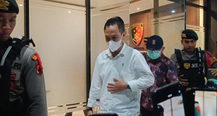 Pantauan detikJateng, Bupati Syamsul keluar dari gedung Sat Reskrim Polresta Banyumas pada pukul 21.12 WIB. Ia nampak mengenakan masker hijau, kemeja putih lengan panjang dan celana panjang hitam.